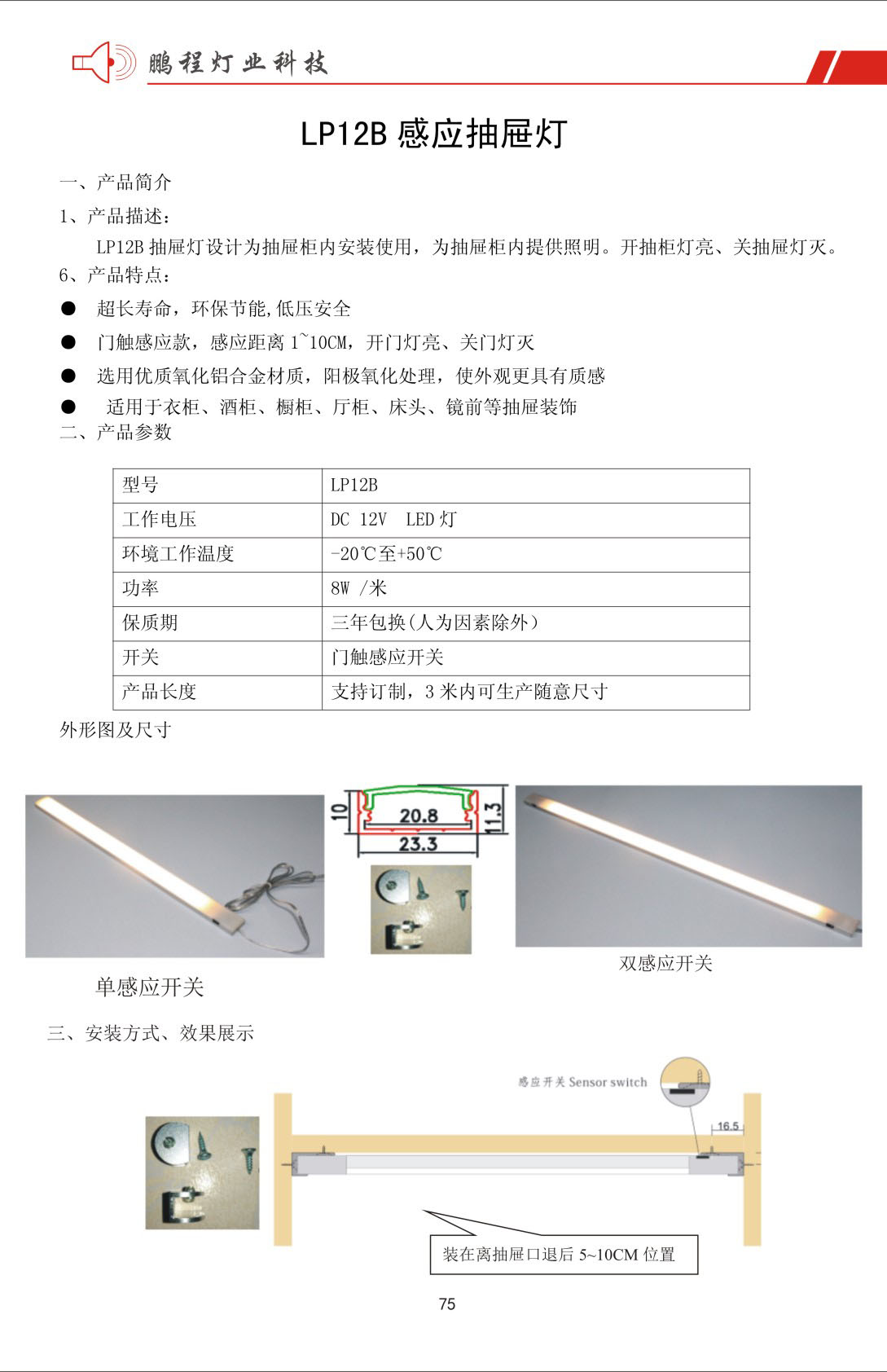 桂林鹏晟光电科技有限公司是一家专注于LED灯具照明,以设计、研发、生产、销售为一体的灯具加工企业。公司自主研发有人体感应LED灯、门触红外感应LED灯、手扫红外感应LED灯、触摸感应LED灯、雷达感应LED灯等科技智能灯具。产品款式多样、节能环保、低压安全、长寿命、低电耗、绿色健康。广泛应用于展厅照明、室内装修照明、家具局部照明(橱柜、酒柜、厅柜、鞋柜、衣柜、衣帽间等)